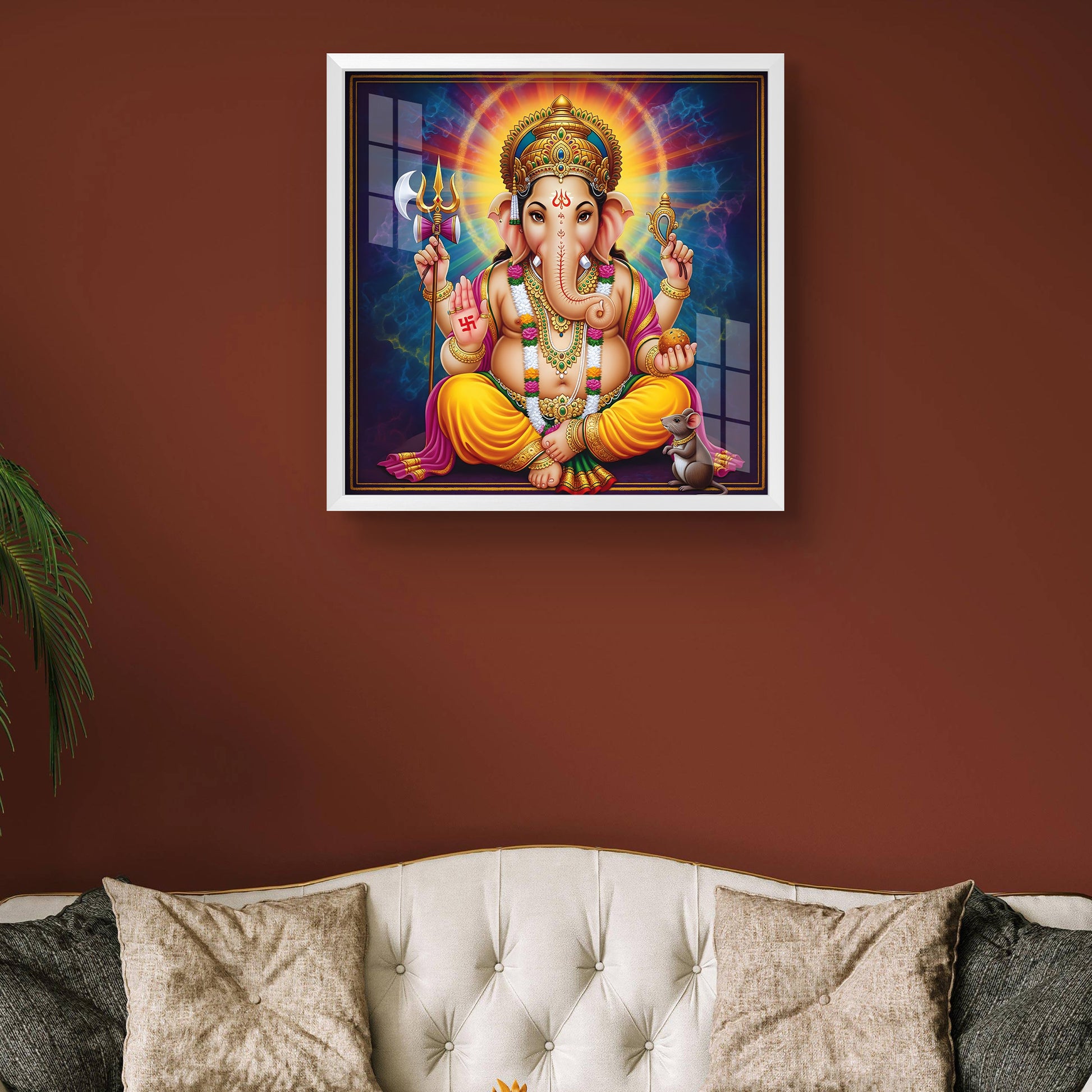Luxury Lord Ganesha Glass Finishing Wall Frame | Colorful Ganpati Bappa Photo for Home Temple & Office | Vastu Spiritual Decor | Diwali Gift