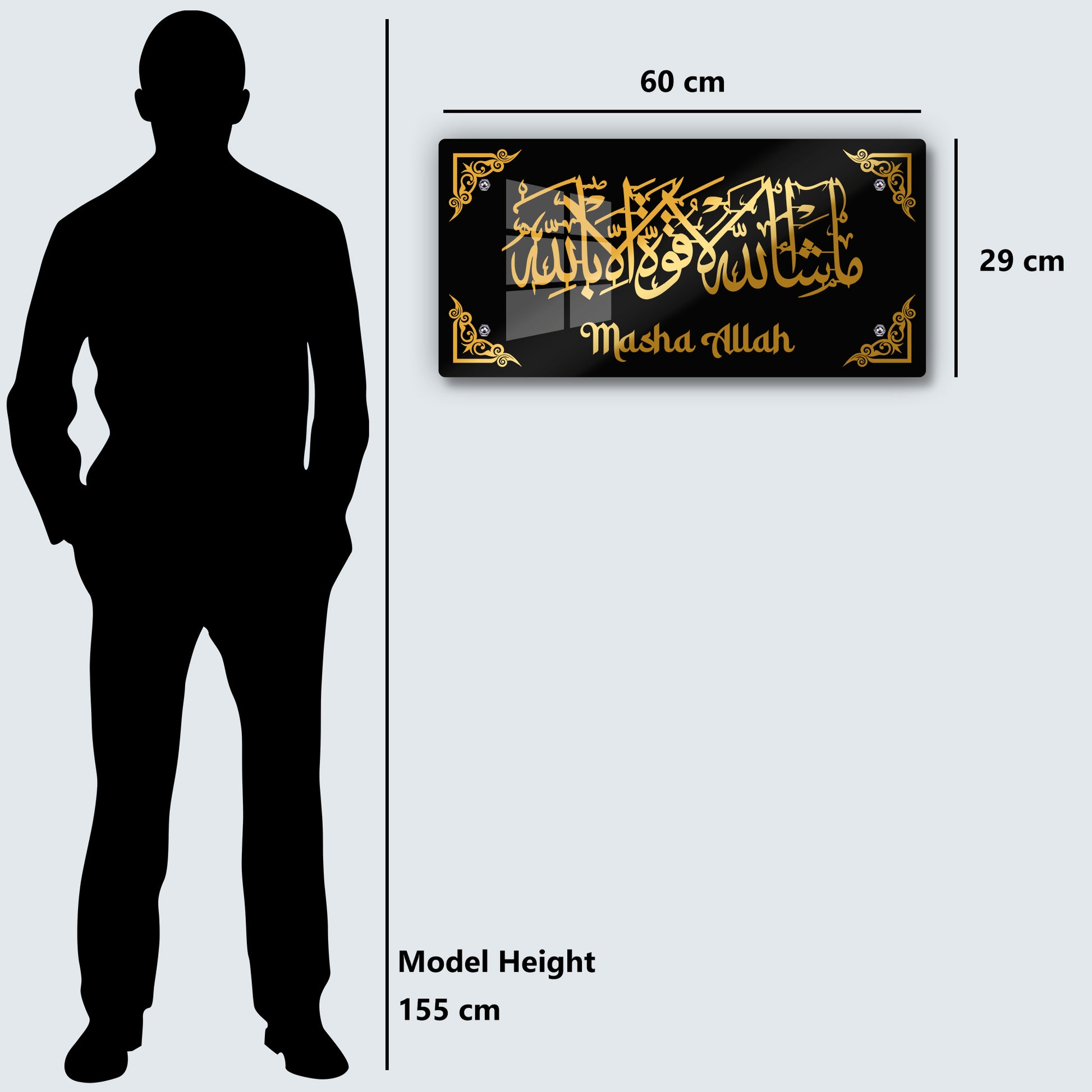 Elevate your home with divine elegance through this Masha Allah Acrylic Wall Art a perfect fusion of spirituality and style. Crafted with precision laser cutting, this 2-layer gold and black acrylic plaque showcases beautiful Arabic calligraphy that radiates blessings and peace. Ideal for any modern Muslim home, prayer room, or office decor.