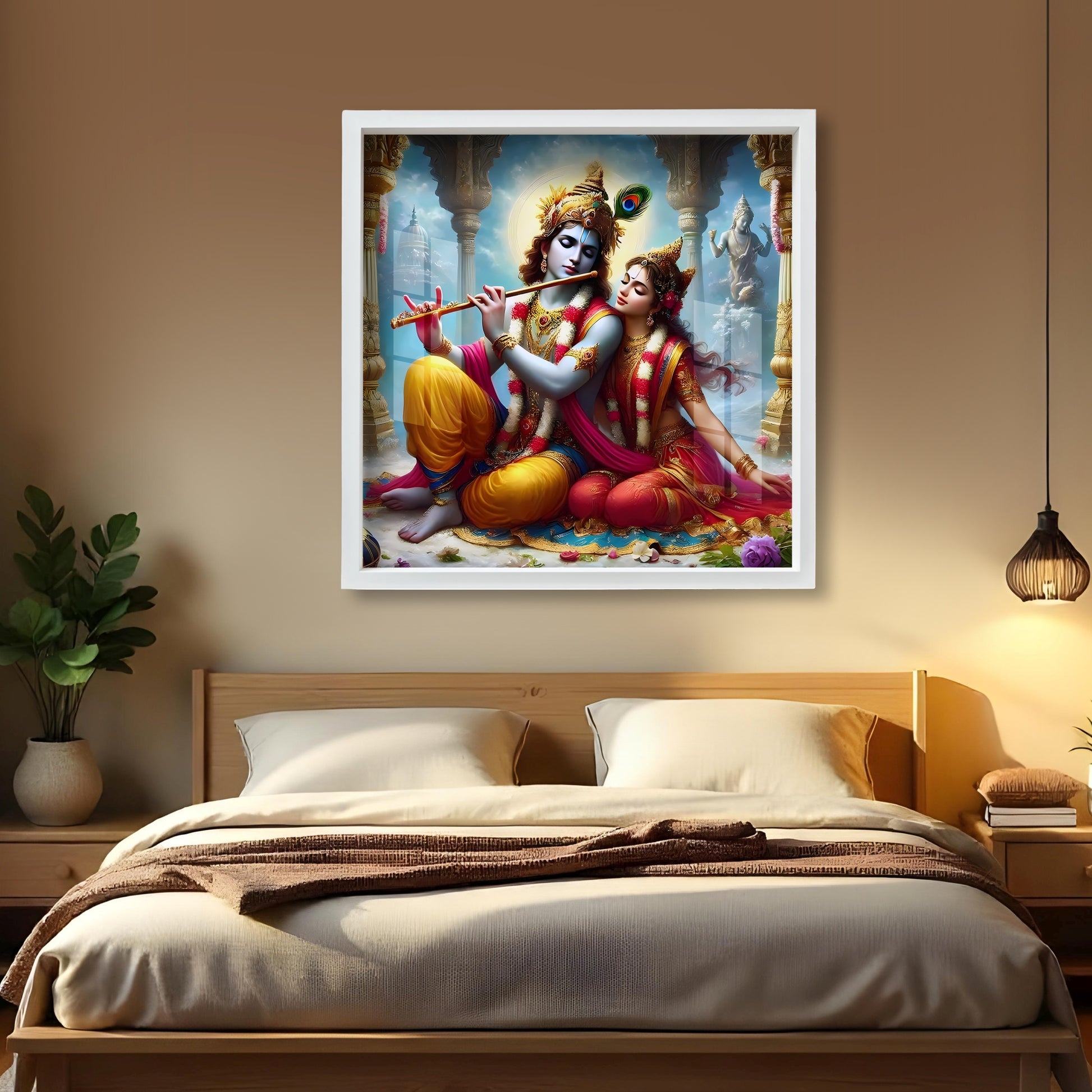 Radha Krishna Wall Art | Romantic Spiritual Acrylic Painting with Frame | Hindu God & Goddess Home Temple Decor